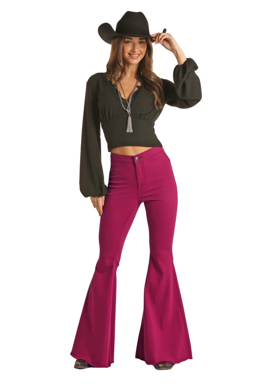 Burgundy Button Bell Bottom Jean – RRWD7PRZR8-62