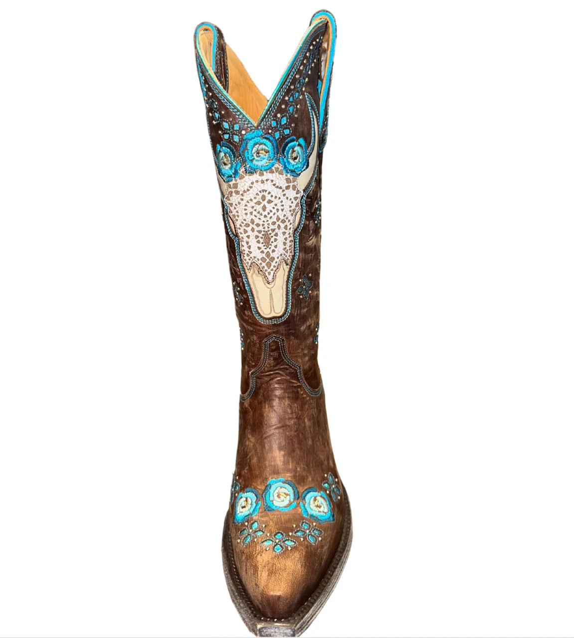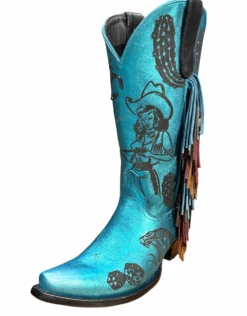 Tri Star Women’s 12″ Floral Embossed Cowgirl Boots – Cognac/Black