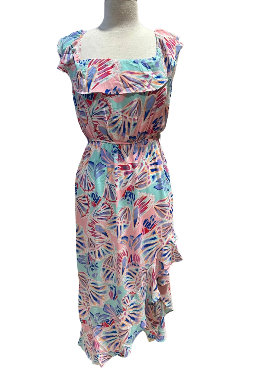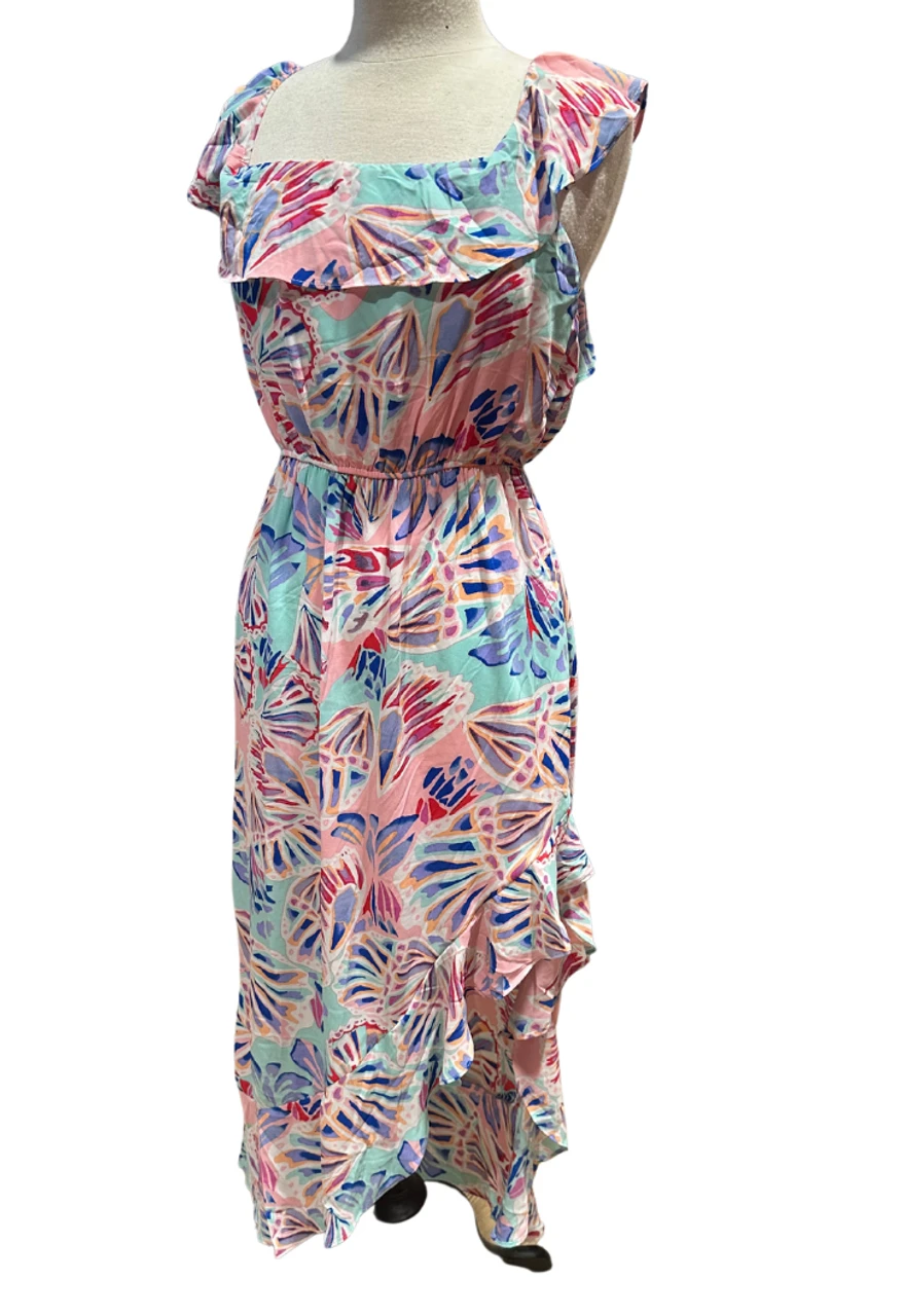 Mutli Color Lined Maxi Dress With Ruffle Sraps And Hemline – D10440MULTI